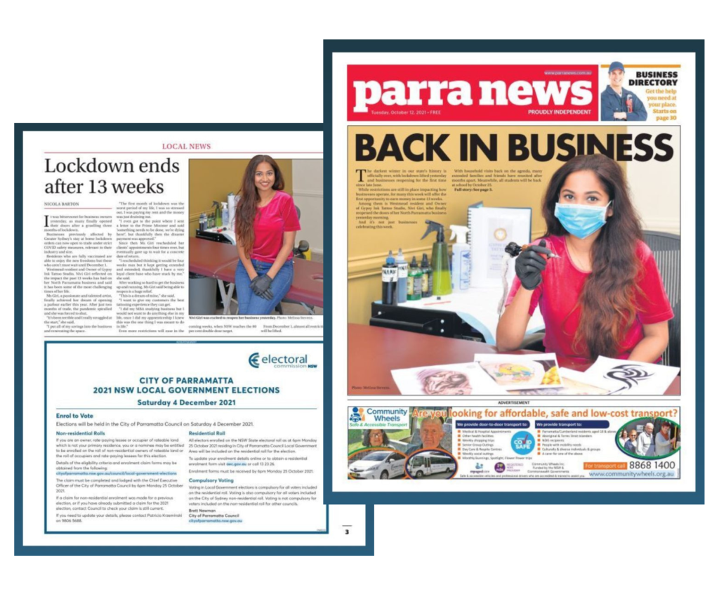 Posted on Tayla Jayne BoonTrustindex verifies that the original source of the review is Google. THE BEST PRIVATE STUDIO!!! so quick and efficient, good pricing, and lovely work with a steady hand. in love with my new piecePosted on Vedant PatelTrustindex verifies that the original source of the review is Google. Great work by Nivi Giri. Tattoo Artist with great skills and perfection. Definitely would recommendPosted on BTrustindex verifies that the original source of the review is Google. Nivi was fantastic. Extremely skilled and gifted as an artist. She fixed a major stuff up by another artist and made my Tatoo look beautiful. Overall a great experience.Posted on Ramzey LoziTrustindex verifies that the original source of the review is Google. Great experience with amazing as always results! Would highly recommendPosted on Ritu PunTrustindex verifies that the original source of the review is Google. I can’t express how convenient and satisfying tattoo on my back done by Nivi.Loved it.I definitely recommend anyone who loves tattoo to visit this lovely lady at Westmead.BIG THANK YOU.Posted on Mikayla MelhemTrustindex verifies that the original source of the review is Google. Amazing. Took us in last minute and did a perfect jobPosted on Abigail GilesTrustindex verifies that the original source of the review is Google. amazing experience!! Nivi was so quick and time efficient, showed amazing attention to detail. I have left very satisfied and will be returning!!! My results are just what I wantedPosted on krunal DesaiTrustindex verifies that the original source of the review is Google. very good qualityPosted on Dhruv SolankiTrustindex verifies that the original source of the review is Google. It’s the best place for your first tattooPosted on Beautiful WorldTrustindex verifies that the original source of the review is Google. Great job, best outcome, highly recommend, will be back soon.Load more